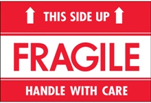 1 1/2 x 4" - "Fragile - Handle With Care" Labels